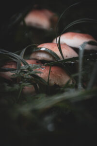 Your own photos capture this beautifully — mushrooms hiding under grass, moss glistening after rain, and tiny spruces shining in soft light. These subjects make excellent macro and close-up shots.